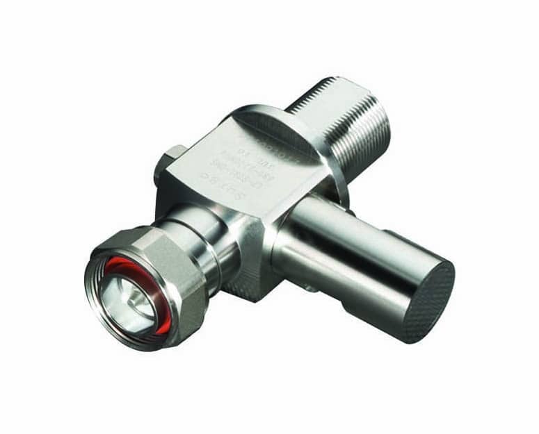 Lightning Protection Connector, In-Line, 7/16 DIN Male Protected/DIN Female Surge. A DC blocked design for outstanding surge performance, capable of withstanding multiple lightning strikes, and with an operating bandwidth of 680MHz-2200MHz. Meets IP67 standard.